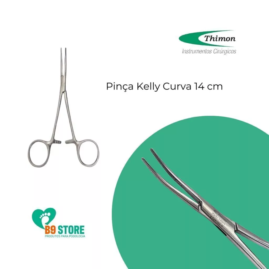 A Pinça Kelly Curva 14 cm Thimon é um instrumento cirúrgico essencial, projetado para fornecer precisão e segurança em procedimentos médicos, podológicos, odontológicos e estéticos. Fabricada em aço inoxidável AISI 420, esta pinça não cortante e articulada possui uma ponta curva serrilhada, ideal para apreensão de tecidos e realização de hemostasia, fechando temporariamente vasos sanguíneos durante cirurgias.