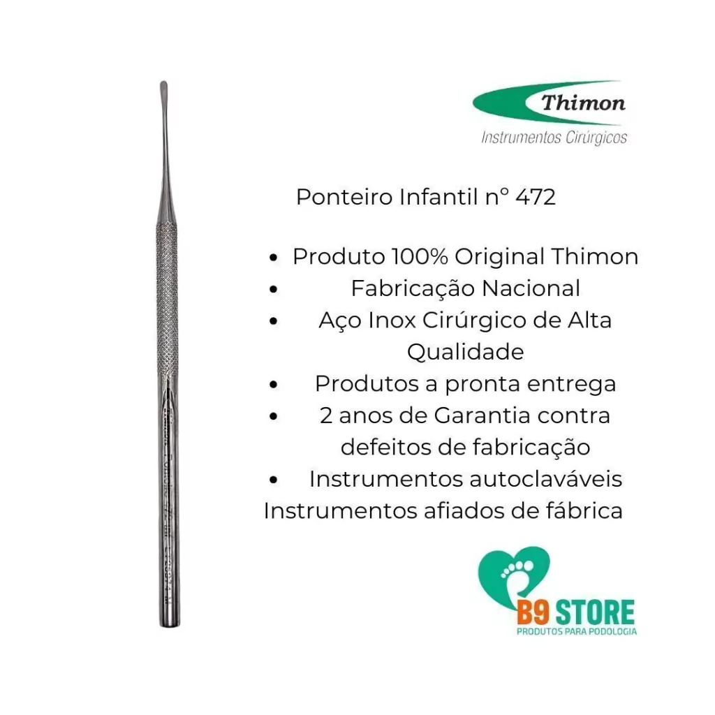 Eleve a qualidade dos seus procedimentos com o Ponteiro Infantil nº 472 da Thimon, um instrumento nacional e original, projetado para oferecer precisão e conforto em intervenções delicadas. Fabricado em aço inoxidável AISI 420, este ponteiro é altamente resistente à corrosão, garantindo durabilidade mesmo após múltiplas esterilizações.